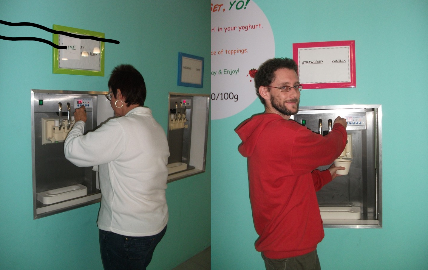 and oh man the frozen yoghurt is amazing!!! SO delicious!! Between the three of us we tried all the flavors - strawberry, vanilla, lime, berry, cheese cake and toffee... My fav is always strawberry.. but the toffee was a close second! Mike said he really enjoyed the lime (yuck) and my mom liked the berry!! The best part is its 98% fat free if you don't add any toppings!! YUM!
